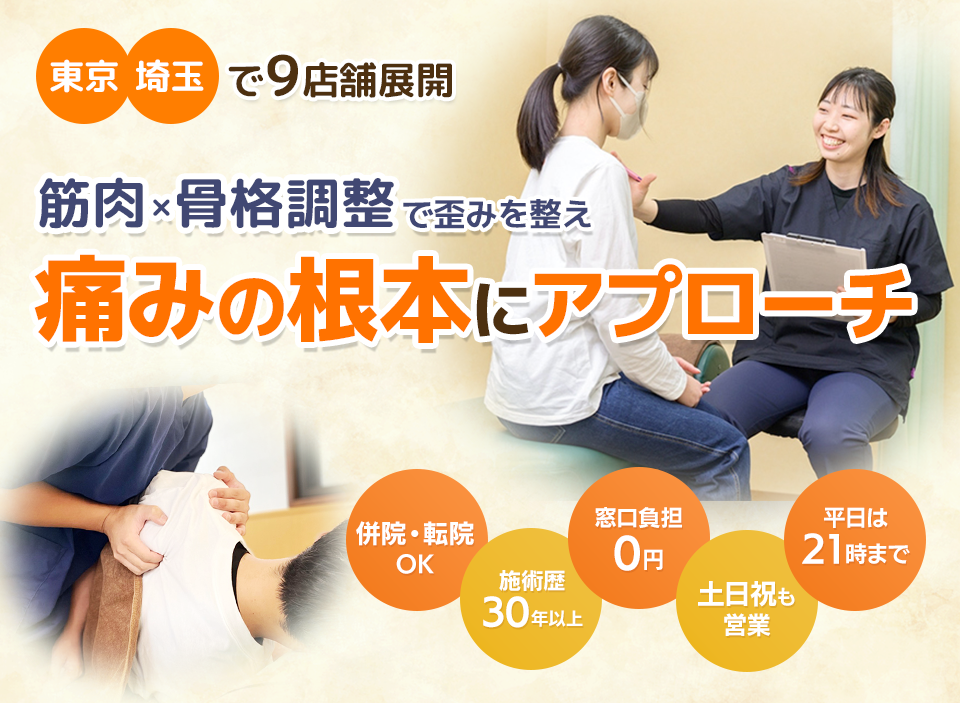 地域の皆様の健康を守るパートナーとして新越谷整骨院は、越谷市の皆様に支えられ、お一人おひとりの症状に合わせたオーダーメイドの施術を行っています。